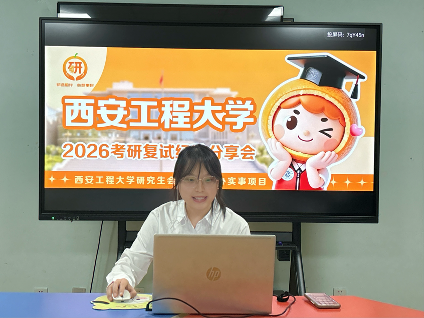 为助力考研学子全面熟悉复试考核流程、缓解备考焦虑、增强应试信心,西安工程大学研究生会于3月25日19:00(周三)在线上举办2026年硕士研究生复试经验分享会。本次活动特邀五位来自不同专业的优秀硕士研究生齐聚“云端”,为备战复试的学子带来一场干货十足、实用性强的经验交流盛宴,活动累计吸引了近500人次在线观看学习,为考研学子冲刺复试提供了有力支持与暖心护航。